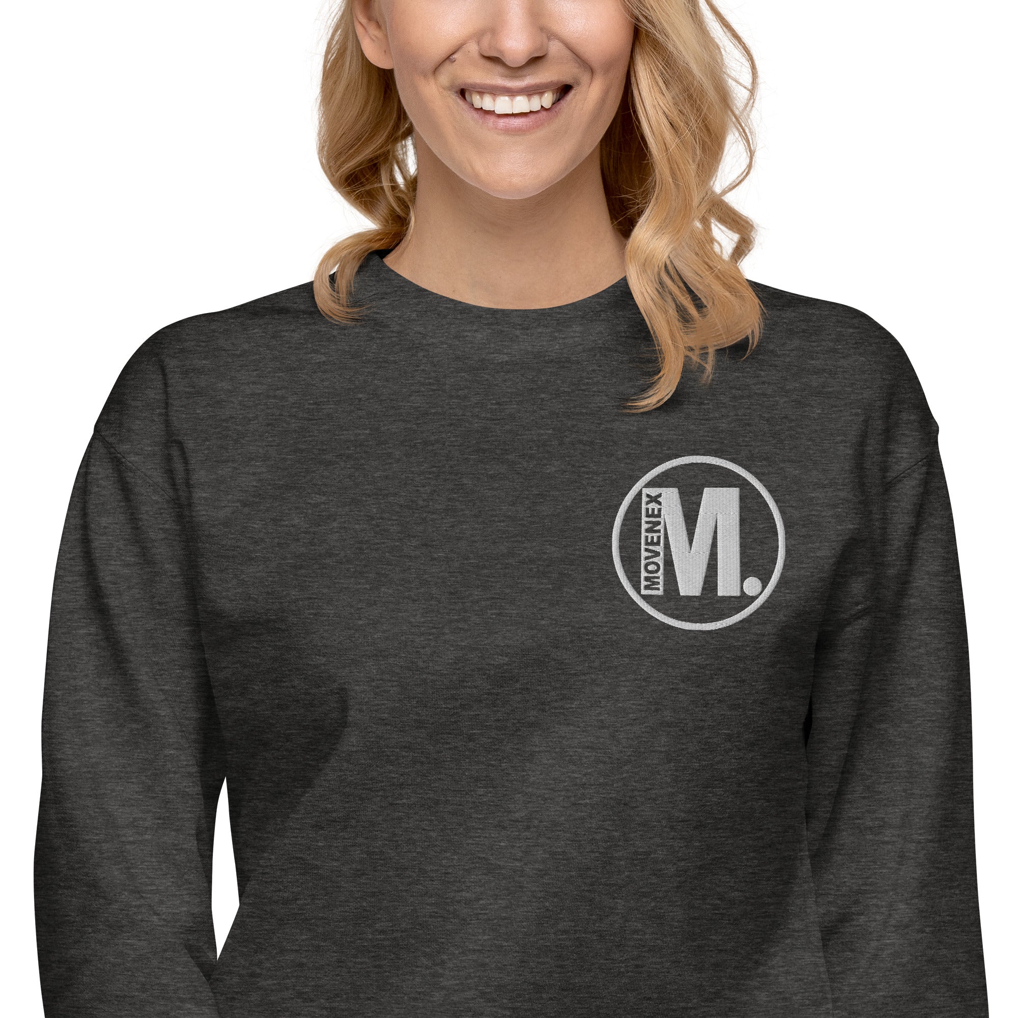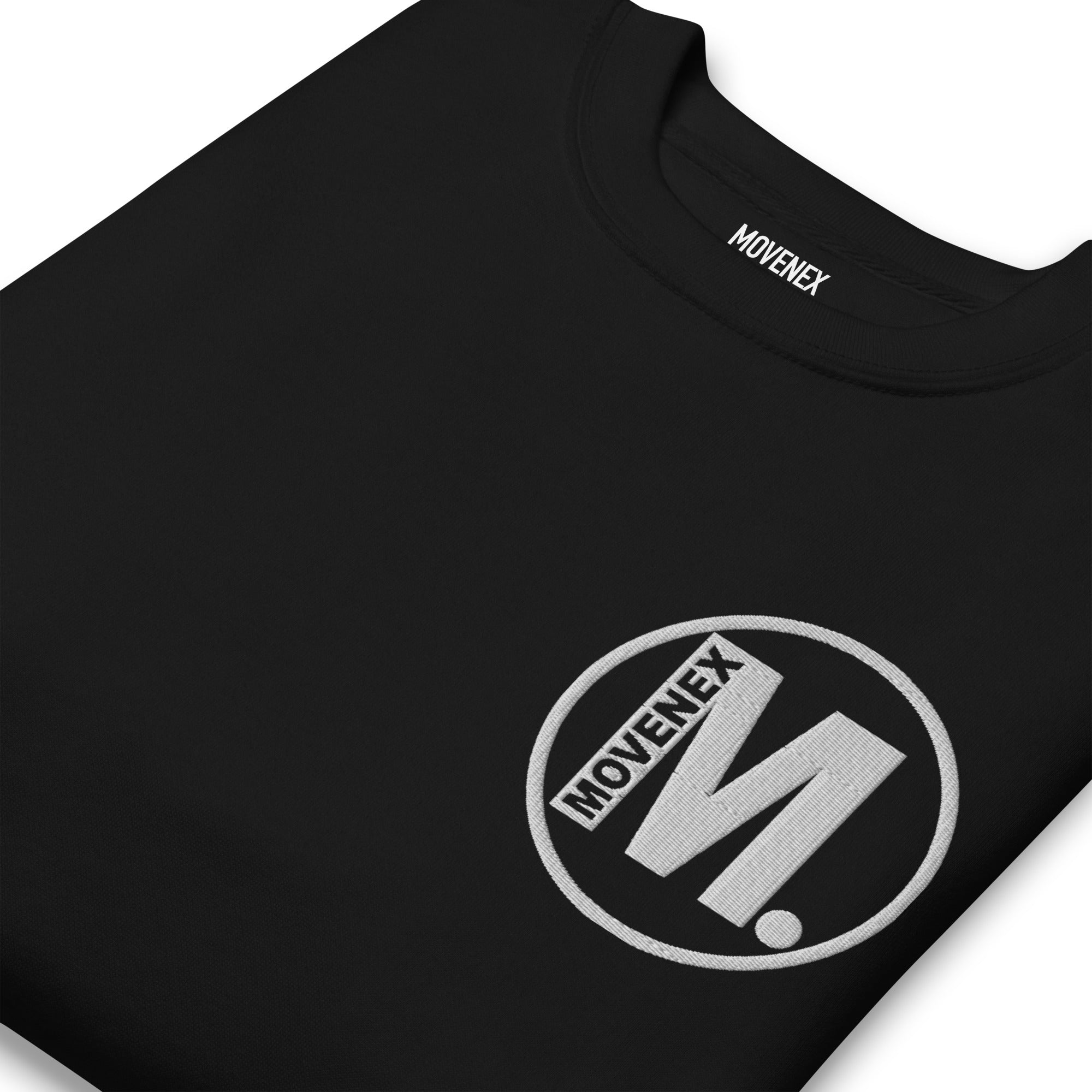 Sweatshirt premium à col rond, logo M brodé blanc sur le cœur et inscription « Movenex » brodée en bas de la manche gauche. Minimaliste, moderne et confortable.